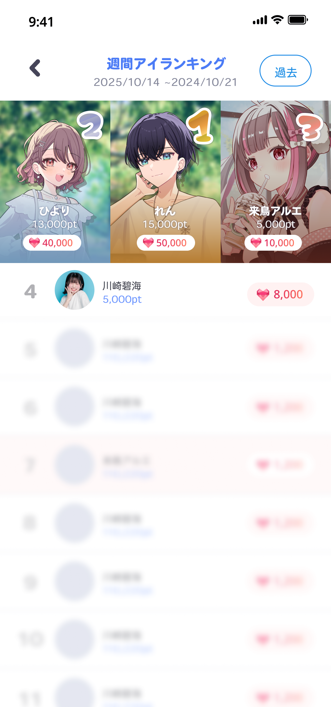 獲得した信頼度を毎週(月~日)でアイ同士で競い合います。上位クリエイターは報酬(ルビー)を獲得できます。